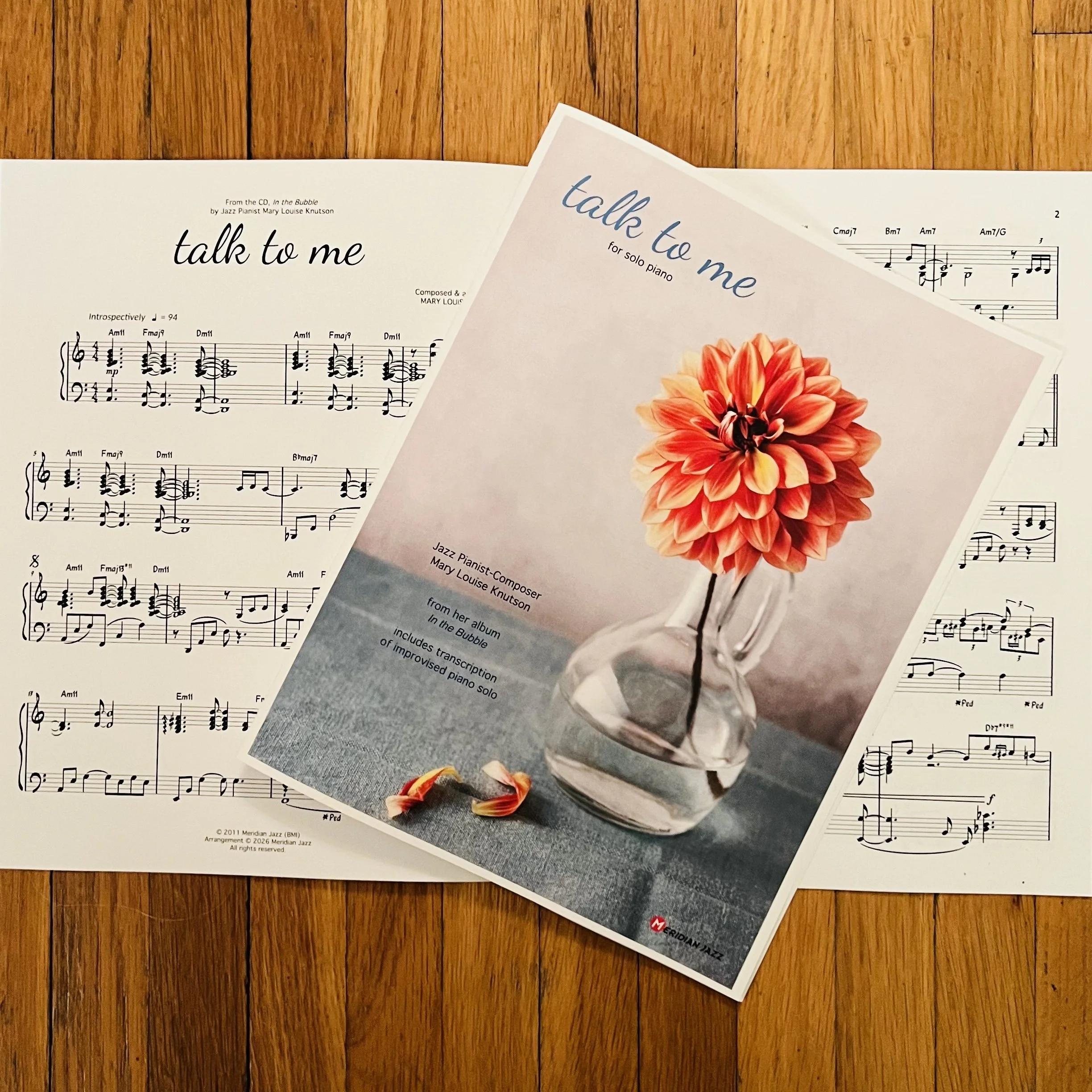 “How Will I Know?,” ”Meridian,” ”Merle the Pearl,” ”If You Please,” ”Call Me When You Get There,” ”Sea of Qi,” ”Can You Hear Me Now?,” ”Talk to Me,” and ”In the Bubble” are all composed by Mary Louise Knutson and published by Meridian Jazz Publishing.